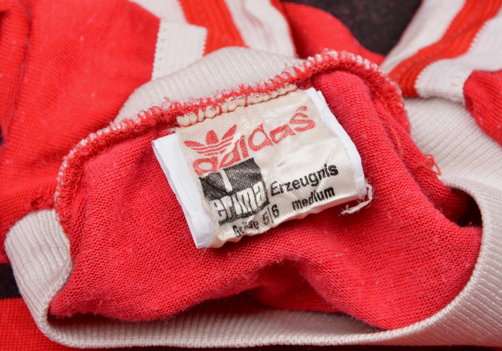 Vintage 70er Jahre Adidas Cafe Schärf Milchbar Trikot Größe D5-6/M - rot