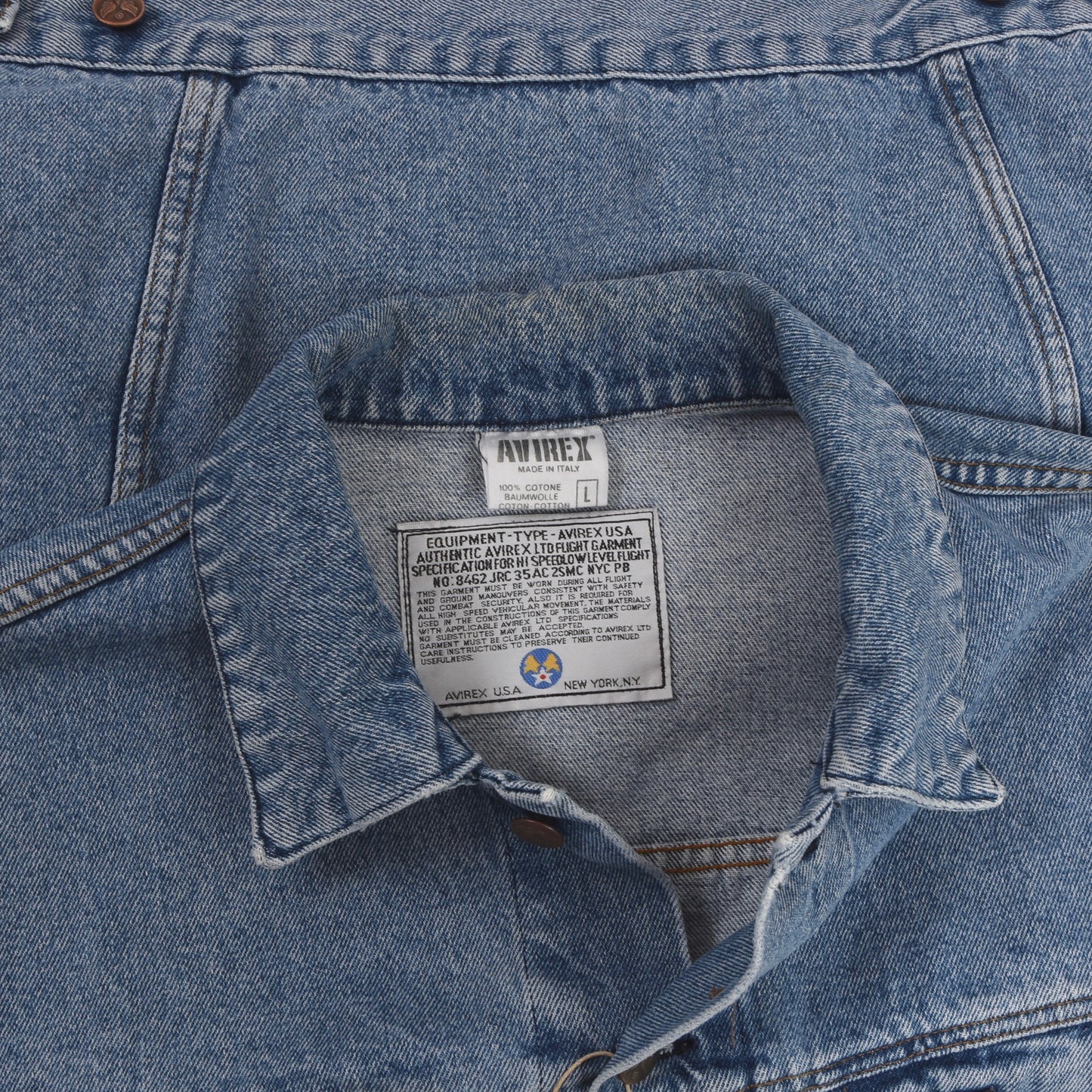 Vintage Avirex Jeansjacke, Größe L. Hergestellt in Italien aus 100 % Baumwolle.
