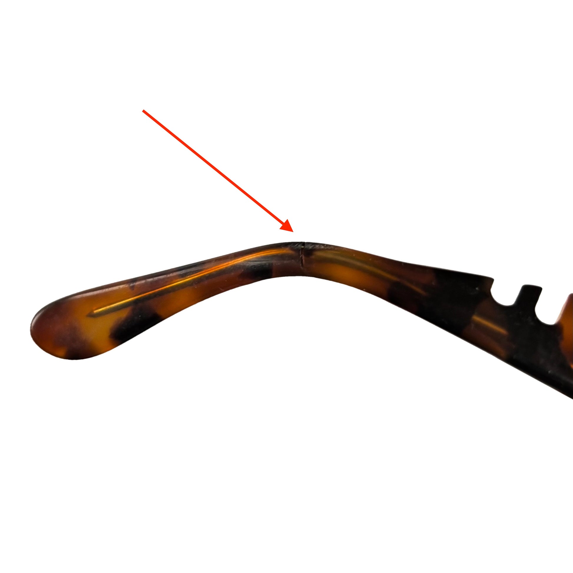Zustand: Gebraucht. Derzeit mit Korrekturgläsern (zerkratzt). Riss am Bügel, siehe Fotos.