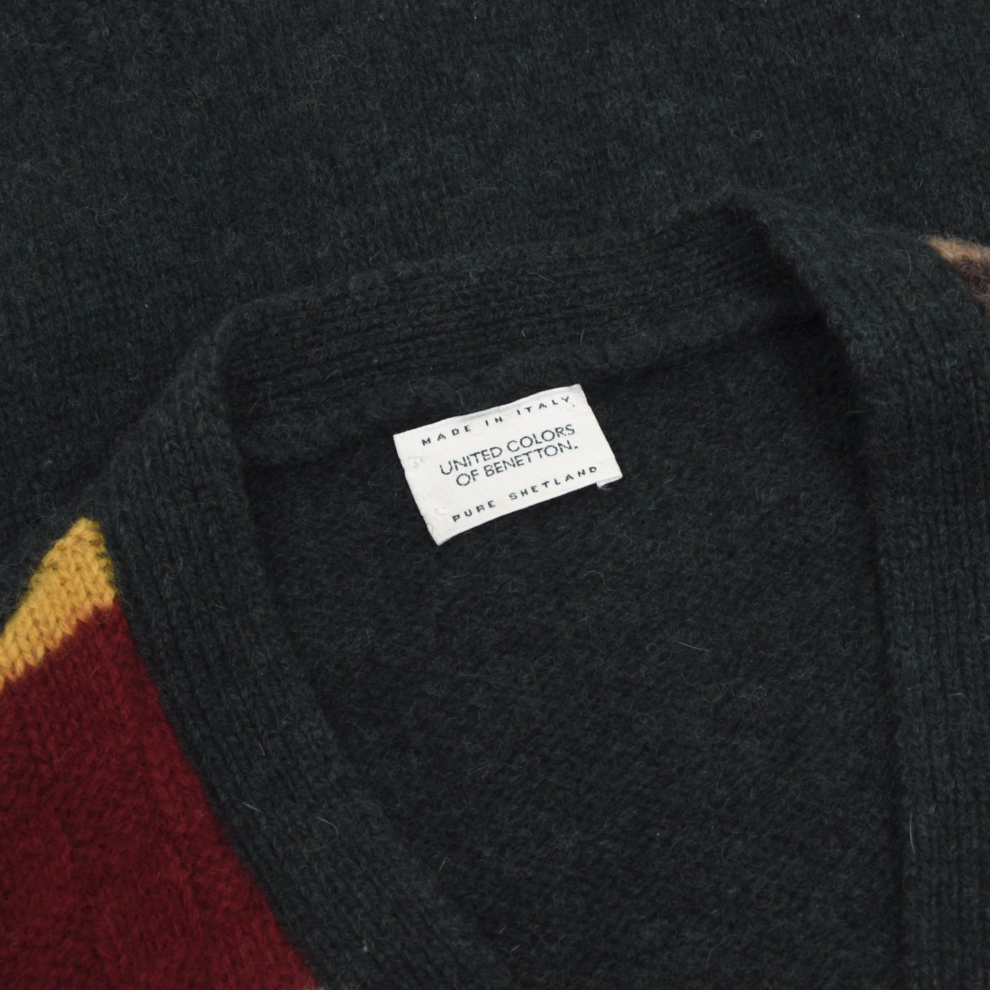 Vintage Benetton Wollweste/Pulloverweste, Größe L. Hergestellt in Italien aus 100 % Shetlandwolle.