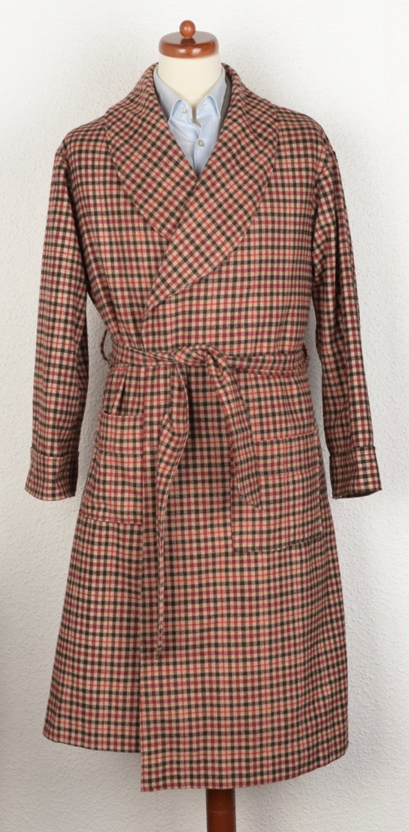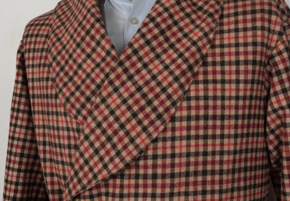 Vintage handgemachte Schalkragen Wolle Robe - kariert